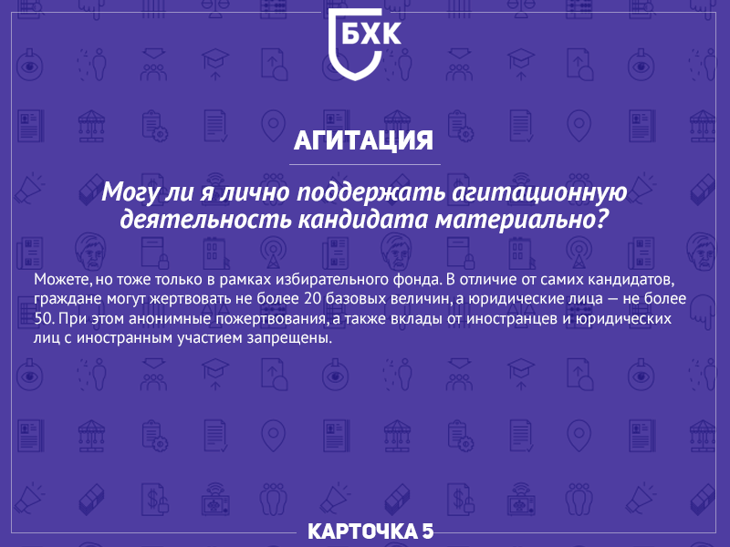 Рэгістрацыя кандыдатаў і агітацыя ў простых пытаннях і адказах: напрыклад, колькі грошай можна ахвяраваць на падтрымку кандыдата.