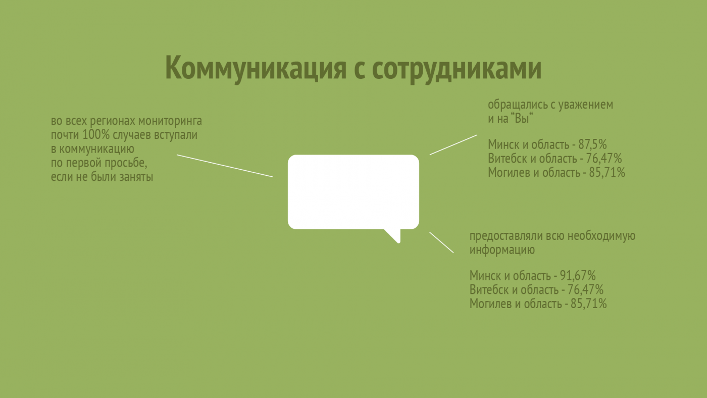 Прадстаўляем вынікі маніторынгу (унутры справаздачы інфармацыя па кожнаму аддзяленню паасобку): Зводны маніторынг; Віцебск і вобласць; Мінск і вобласць; Магілёў і вобласць.