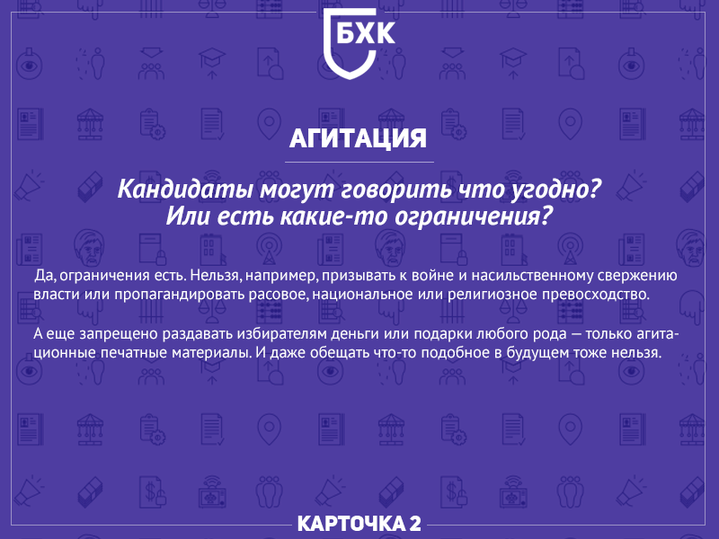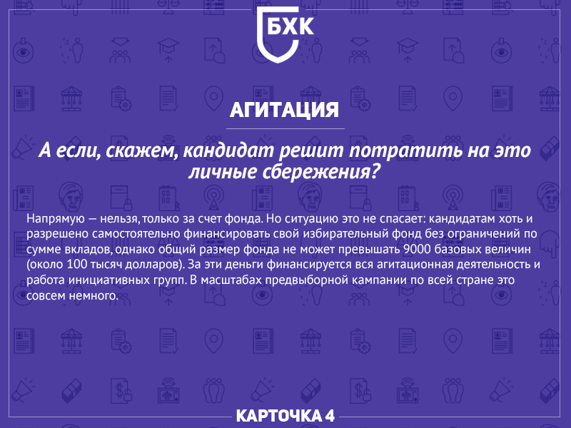 Регистрация кандидатов и агитация в простых вопросах и ответах: например, сколько денег можно пожертвовать на поддержку кандидата.