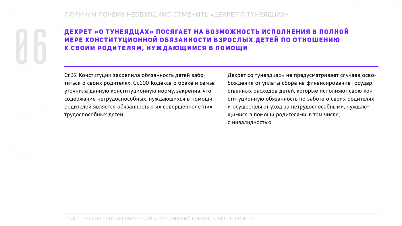 Также напоминаем 7 аргументов, почему Декрет следует признать нарушающим Конституцию и международные договоры страны и отменить.